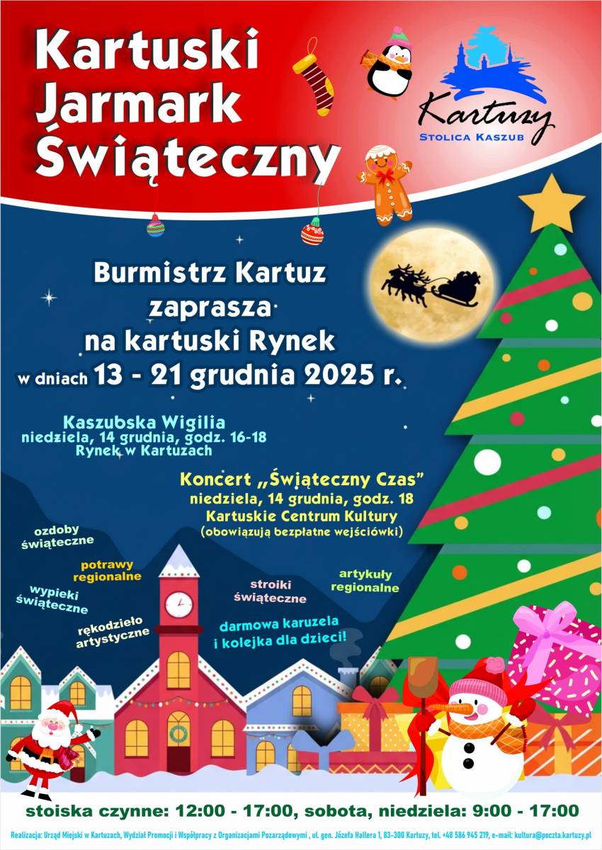 Burmistrz Kartuz zaprasza na Kartuski Jarmark Świąteczny w dniach 13–21 grudnia 2025 r.